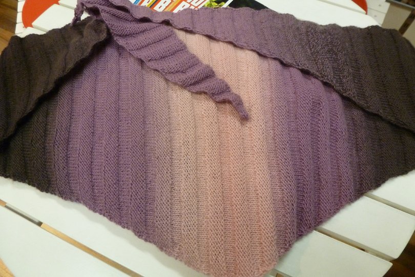 Strickrezept für ein Dreiecktuch mit Wellen , gestrickt aus Schoppel- Zauberball , mit Nd Nr 3/3,5 , es ist einfach zu stricken, die Anleitung ist gut zu verstehen ! solche Tücher hat man nie genug , es gibt ja so viele schöne Farben !