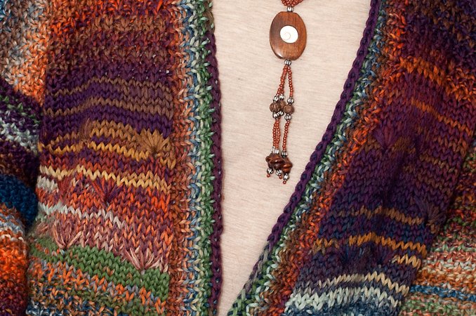 “Nastja” ist die perfekte Jacke für kühlere Herbsttage im Freien oder kalte Wintertage im Haus. Sie ist leicht oversized geschnitten und hat keine Knöpfe. Wer sie lieber geschlossen tragen möchte, kann dazu einen schönen Gürtel verwenden.