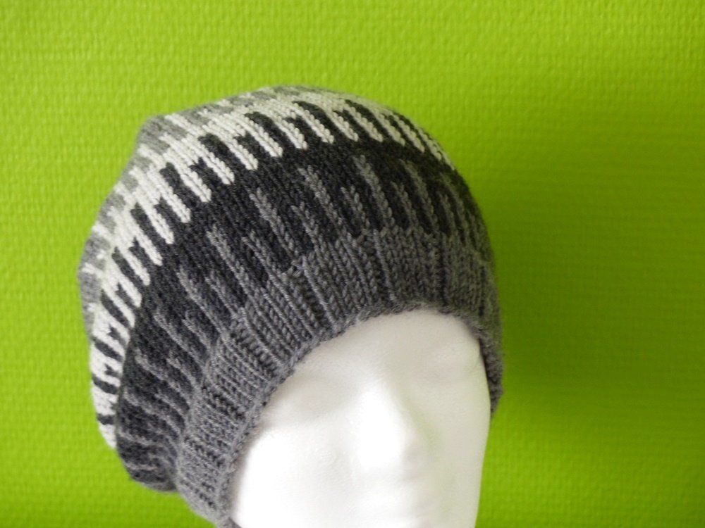Eine gut verständliche und detaillierte Anleitung für einen Beanie mit einem Mix aus Grautönen.