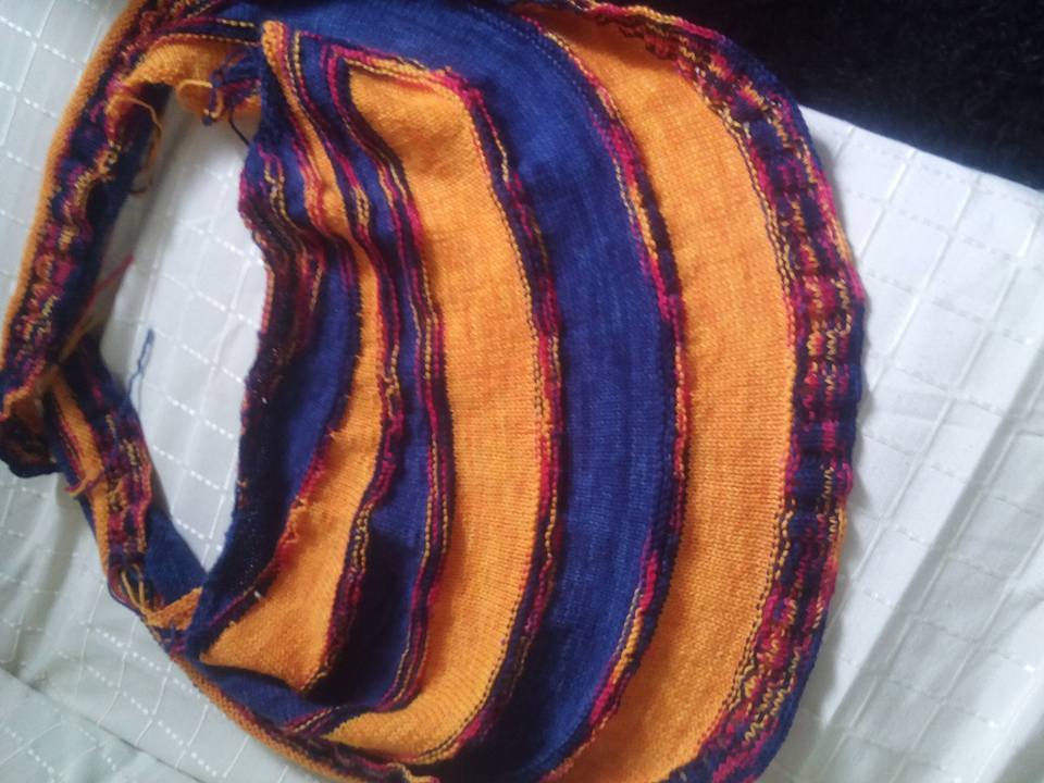 Bei Verwendung von Garn mit einer LL von 400m auf 100gr erreicht das Tuch eine Spannweite von ca 200cm und ist ca 50cm breit (gespannt)
