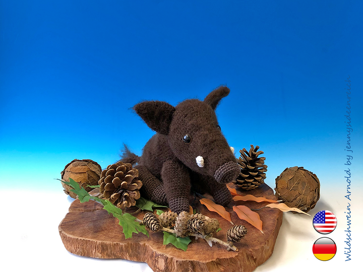 Ihr könnt hier die komplett ausformulierte Häkelanleitung zu Arnold dem Wildschwein erwerben Sie ist 11 Seiten lang und besteht aus Texten und Bildern zu allen Einzelteilen.