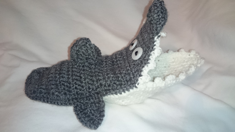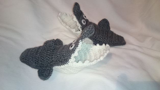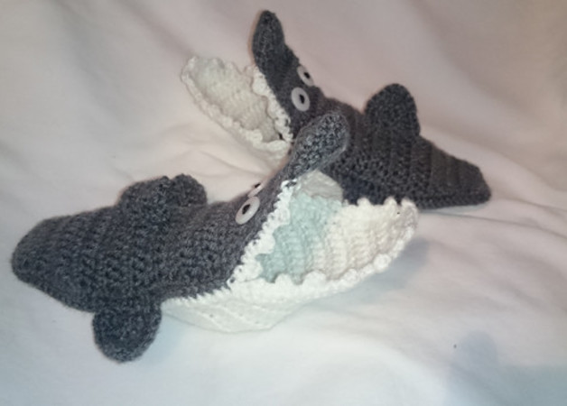 Hier könnt ihr die Anleitung für die heißbegehrten Haisocken kaufen. Diese Anleitung ist für die Kleinsten unter uns ausgelegt. Die angegebenen Maschenzahlen beziehen sich zunächst auf die Größe 22/23, aber es ist eine Erklärung dabei wie man die Gr. 20/21 und auch 24/25 häkeln kann. Wer etwas geübter im Häkeln ist, kann auch andere Größen aus der Basisangabe ableiten.