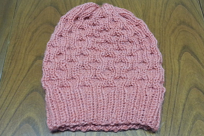 Die Mütze wird mit Nadel Nr. 5 gestrickt. Ich habe eine Schurwolle mit LL 130m auf 50g verwendet und es haben 50g Material ausgereicht.
