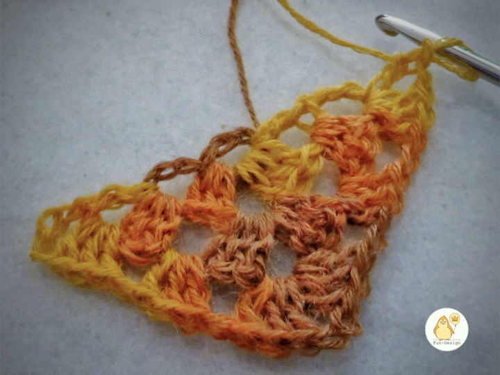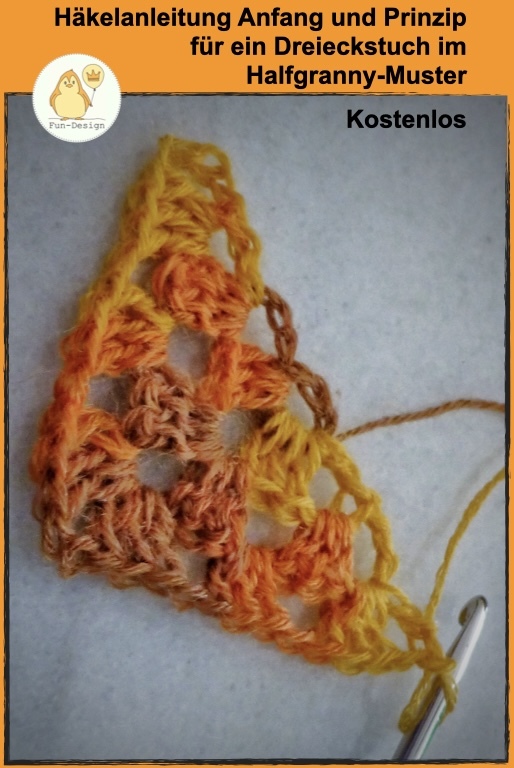 eines Dreieckstuches im Half-Granny-Muster.