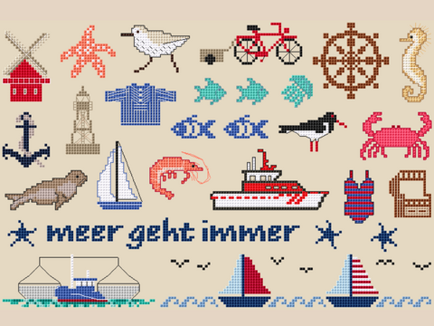 Diese Stickvorlage ist mit der Umrechnung Vaupel & Heilenbeck, OOE, DMC, Anchor und HF Garnen.