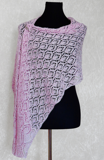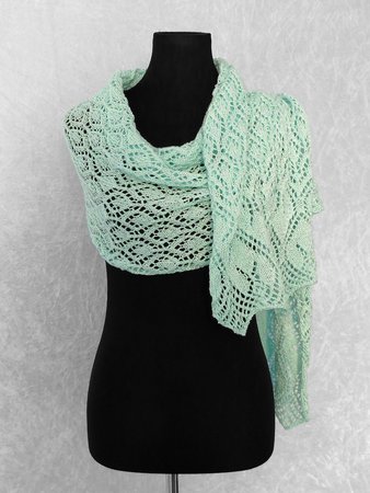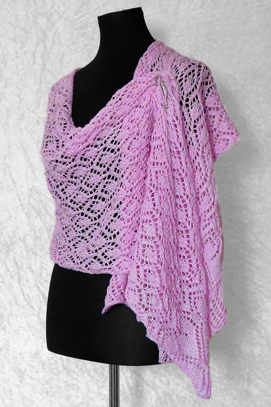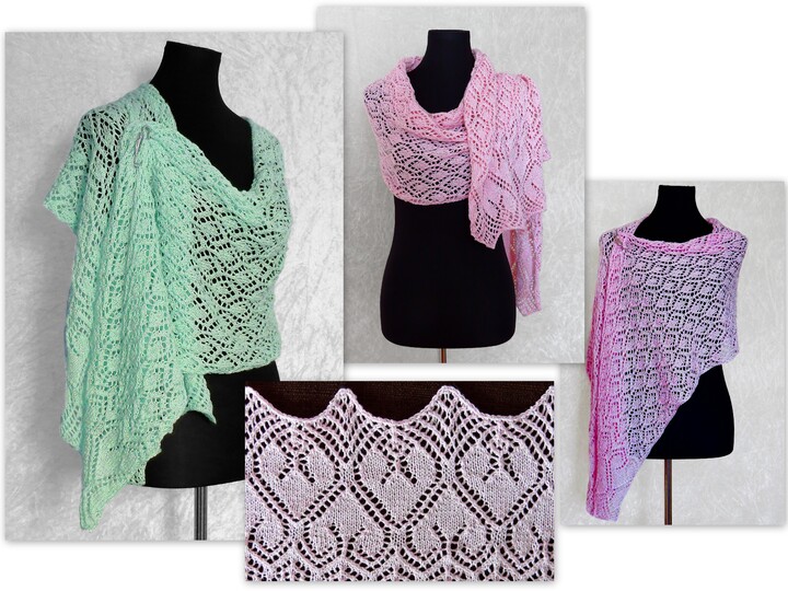 Die Anleitung zum Schal Tuch stricken umfasst 8 Seiten und enthält Strickschriften (Charts), einen ausführlichen schriftlichen Teil und eine Schemazeichnung.