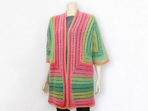 Die Stola ist in Breite und Höhe variierbar. Mit dem im Original verwendeten Garn hat sie nach dem Spannen eine Größe von ca. 200 x 47 cm (diese Zahl ist nur ein Richtwert).