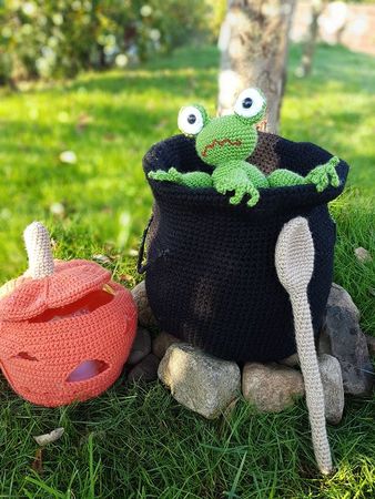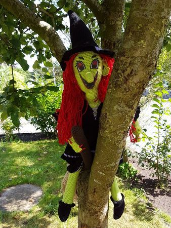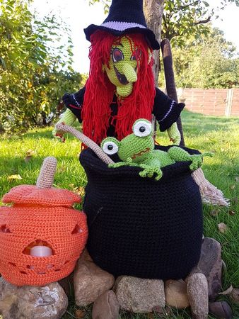 Halloween ohne Hexe ist nicht vorstellbar. Deswegen gibt es hier eine richtige gräßlich-häßliche Halloweenhexe, die mit Hut 80 cm hoch ist. Und zu jeder Hexe gehört natürlich eine Hexenküche und ein Besen.