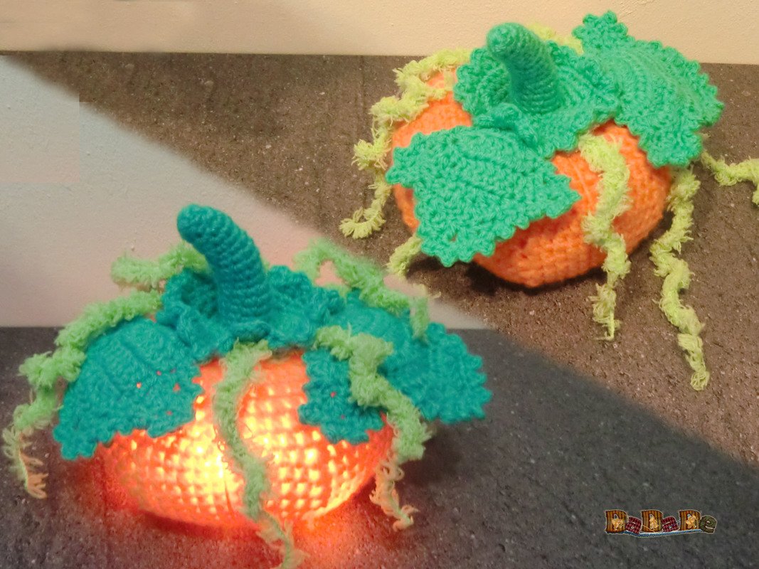 Mit Wolle der Nadelstärke 5 wird die Dekoration Kürbis ungefähr ;