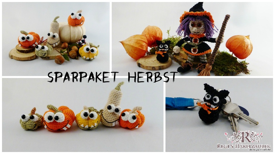Hurra, der Herbst ist da, farbig und schön! Und damit auch die Kürbisse, welche uns derzeit von überall her anlachen. Die spooky Kürbisköpfe sowie Hexchen Lilly mit ihrem schwaren Kater sind daher eine lustige und beliebte Deko für ein herbstliches zuhause**, z.B. zum Aufstellen auf dem Tisch oder vor dem Fenster, zum Aufhänger an der Türe, auch passend zu Halloween. Kater Bubeli eignet sich auch als Schlüsselanhänger.