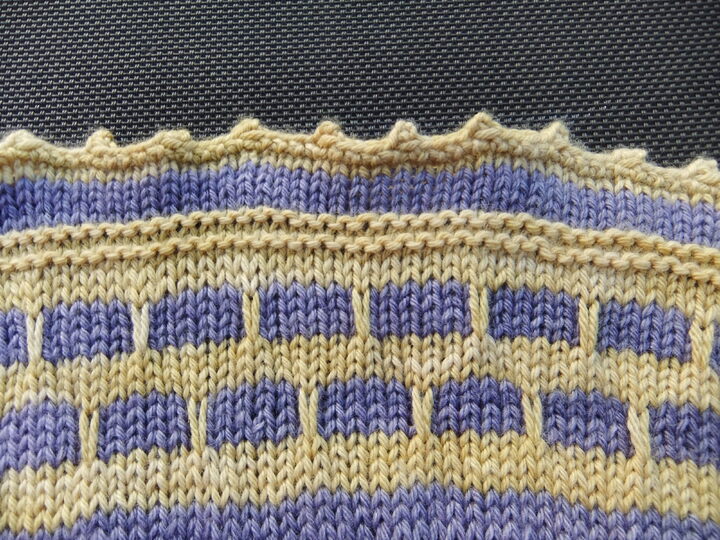 Zum Picotrand und dem Rand stricken ohne einrollen gibt es Hinweise auf Youtube Videos zum besseren Verständnis.
