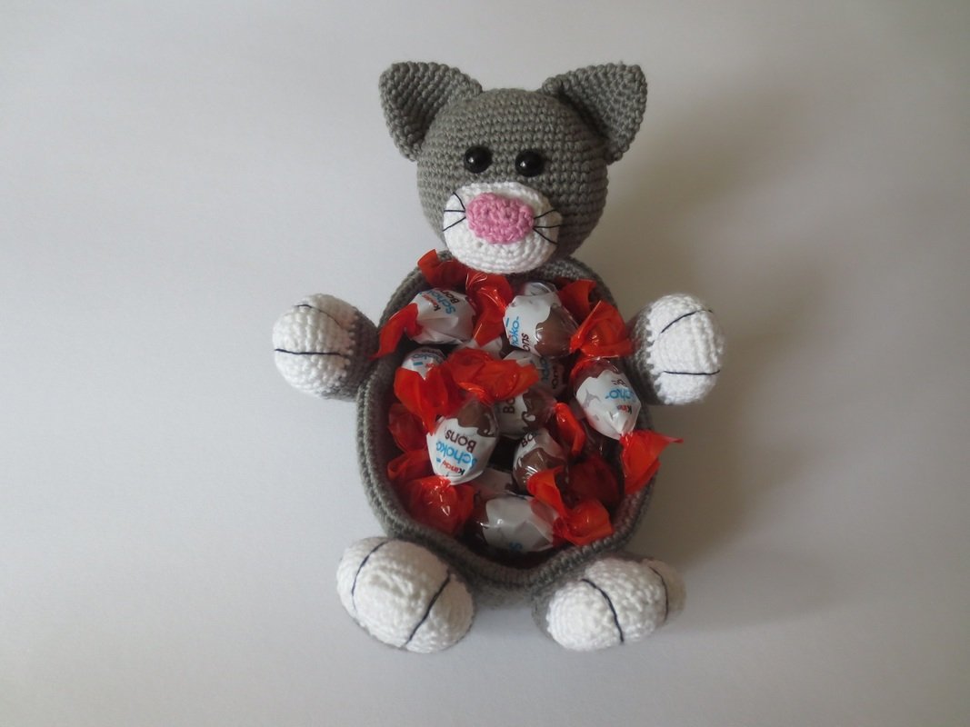 Hinweis: Beim vorgestellten Produkt handelt es sich NICHT um die fertige Naschkatze , sondern lediglich um eine Schritt-für-Schritt-Häkel-Anleitung , die Dir dabei hilft, selbst eine Naschkatze zu häkeln.