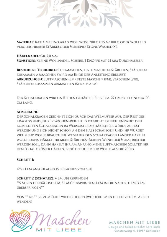 Ich wünsche euch viel Spaß und Freude beim Häkeln und selbstverständlich auch beim Tragen :-)