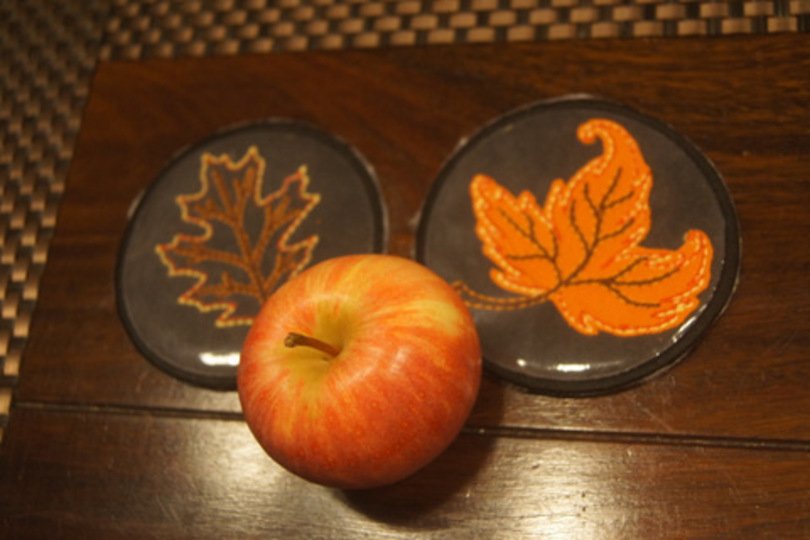 Diese Redwork-Stickdateien sind absolut erwachsenentauglich. Und die Untersetzer sind ein tolles Mitbringsel.