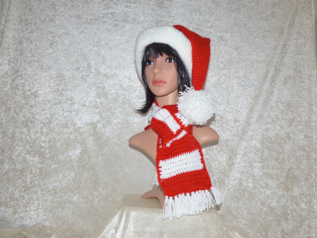 Die ausführliche Anleitung beschreibt wie die passende Kopfbedeckung und passender Schal zur Weihnachtszeit für jeden Kopf gehäkelt wird.