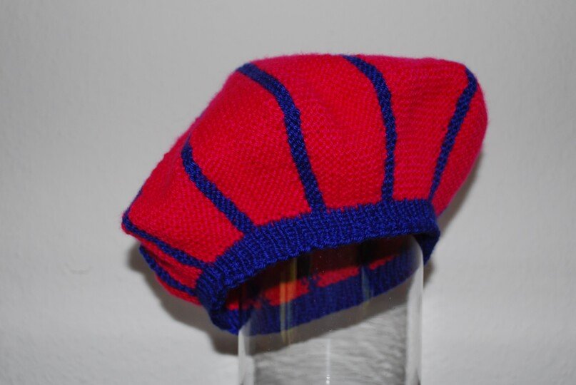 Durch den unterschiedlich breiten Rand erhält diese Baskenmütze ihren besonderen Reiz.