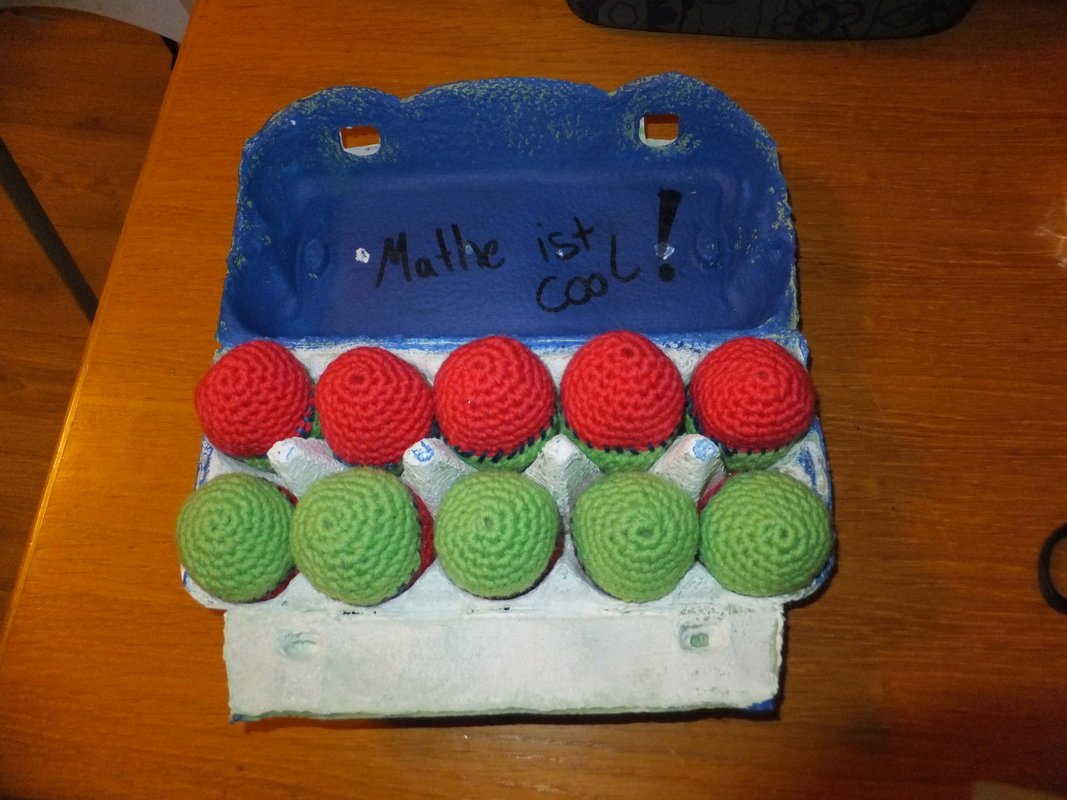 In der Anleitung wird erklärt wie man die "Eier" häkelt in 2 Farben, wie man aus einem Eierkarton eine tolle Rechenschachtel macht, eine Motivvorlage um den Karton optisch aufzuhübschen und natürlich die Spielanleitung.
