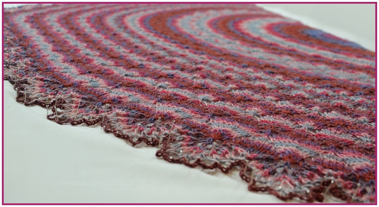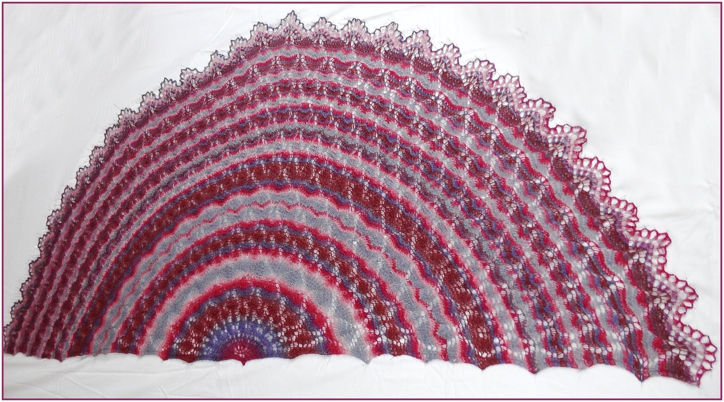 Das Tuch hat insgesamt 194 Reihen, die alle laut aufwendiger Strickschrift aufgeführt sind.