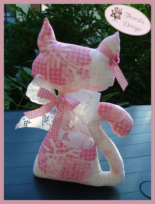 Je nachdem, wie fest die Katze ausgestopft wird, kann sie auch auch Kuscheltier oder Kuschelkissen verwendet werden.