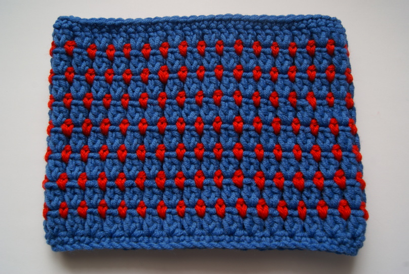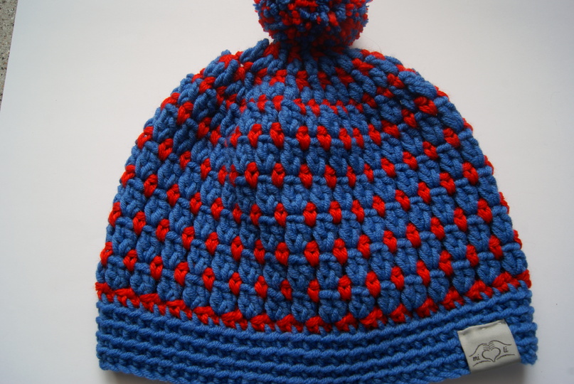 ODER: Gründl, Lisa uni: doppelfädig häkeln: blau: 2 Knäuel, rot 1 Knäuel (Faden von innen und außen)