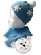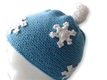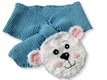 Die Mütze und der Schal sind gestrickt. Die Applikationen sind gehäkelt.