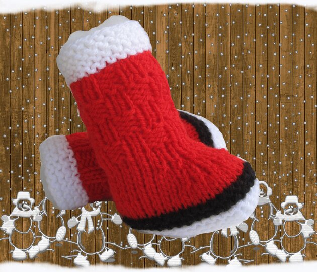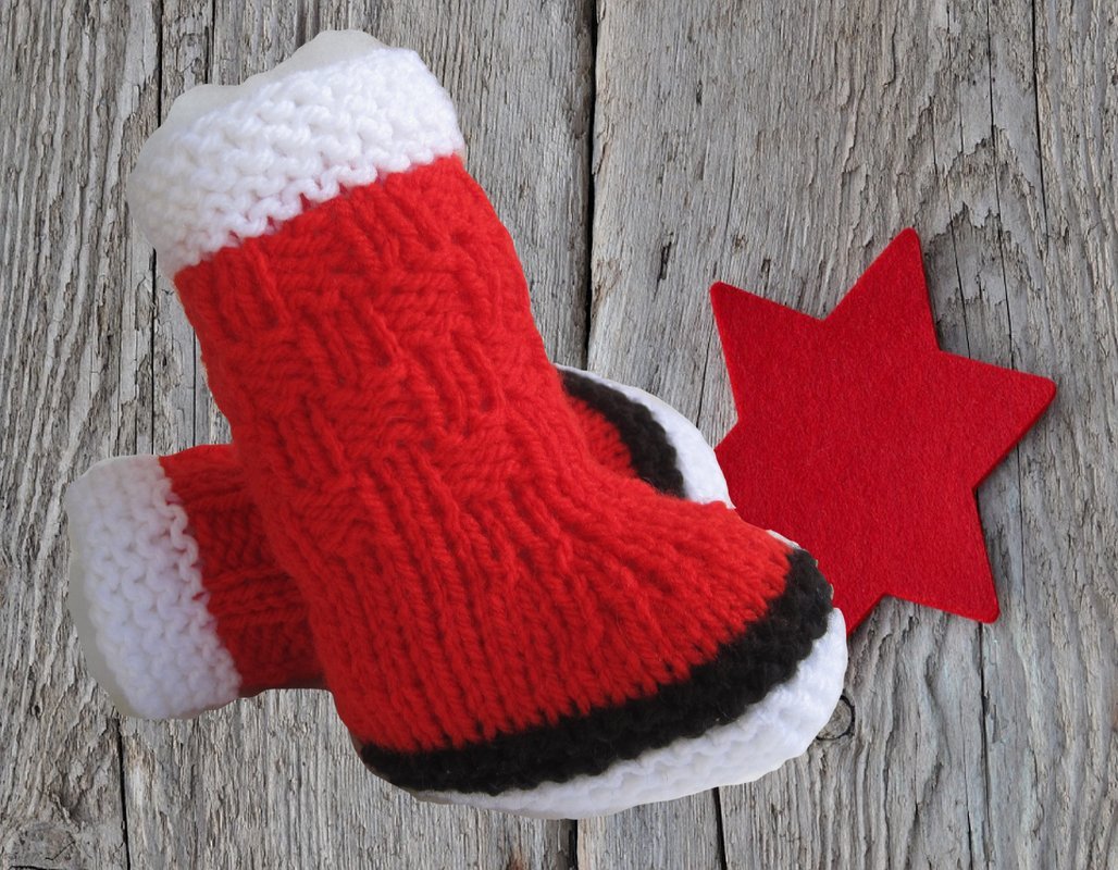 Diese süßen Babyschuhe für Weihnachten sind leicht zu stricken, Sie müssen nur rechte und linke Maschen stricken können. Der Rest wird in jeden Schritt erklärt. Somit können Sie für das eigene Baby schnell stricken und was gibt es Süßeres, als diese Schuhe? Sie können die Babyschuhe mit Sohlenlänge von 8 cm natürlich auch gerne verschenken. Gestrickt wird mit weicher Wolle und mit Nadel Nr.4. Ganz ohne Nadelspiel sind die Schuhe schnell gefertigt.