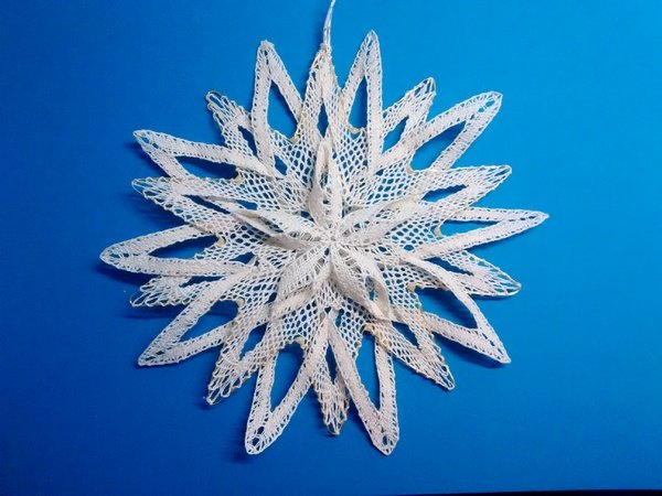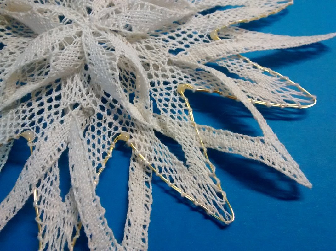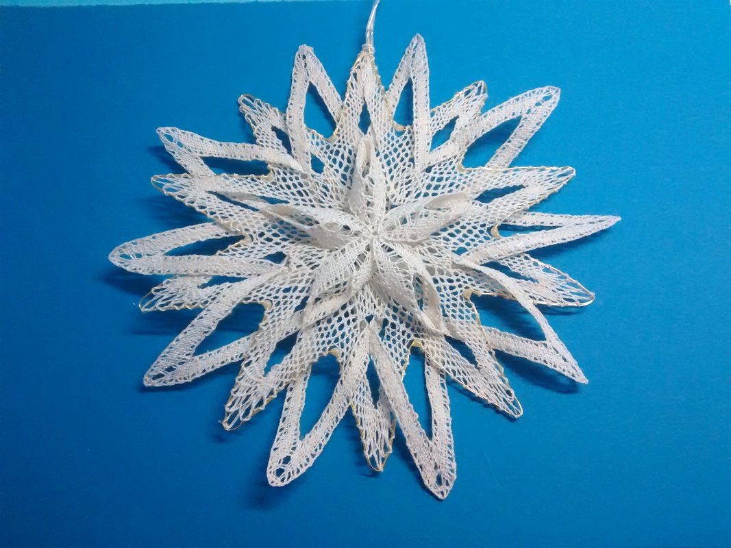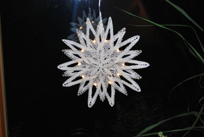 Die Anleitung ist für eine geklöppelten Stern mit ca.20 cm Durchmesser und 4cm Tiefe. Der stern besteht aus zwei Teilen. Kleine LEDs bringen den Stern zum Leuchten.