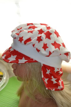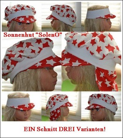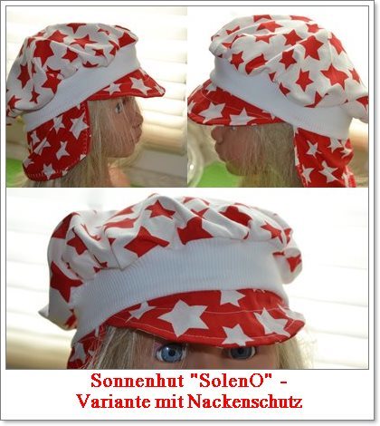 Während der Schnitt "Sonnenhut Soleni" (auch hier verfügbar) doch eher was für Mädels ist, ist der Sonnehut "SolenO" eine Variante, die Buben und Mädels gleichermaßen steht.