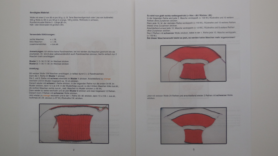 Ihr benötigt für die Decke: ca. 400 g orange, 100 g weiss und Wollreste in schwarz.