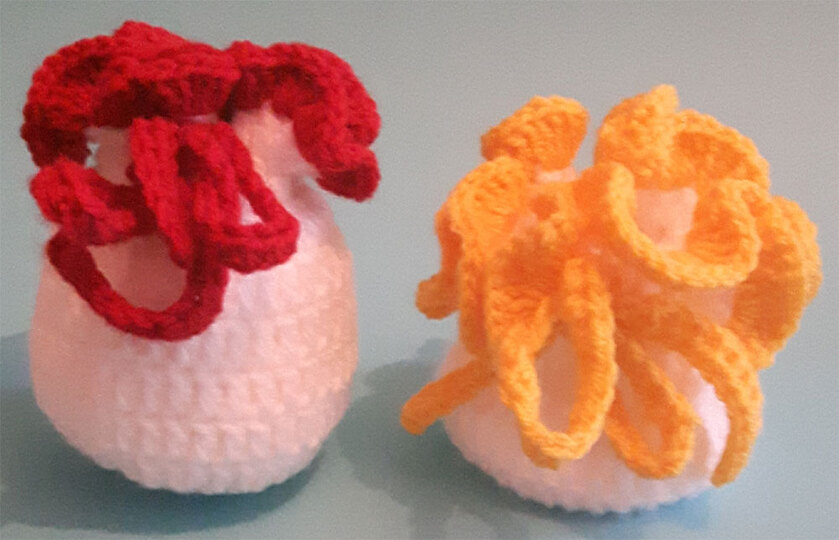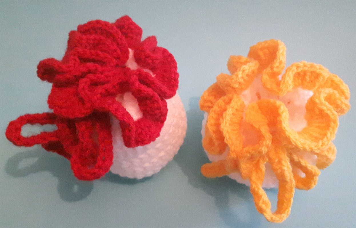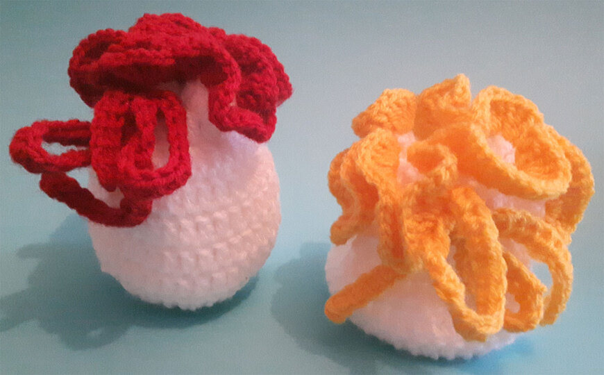 erforderliche Kenntnisse: Fadenring, Luftmaschen, Kettmaschen, Stäbchen, halbe Stäbchen