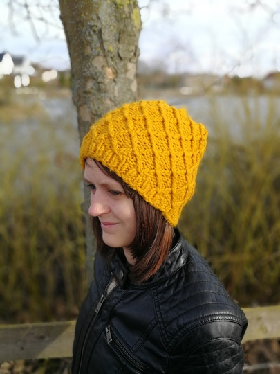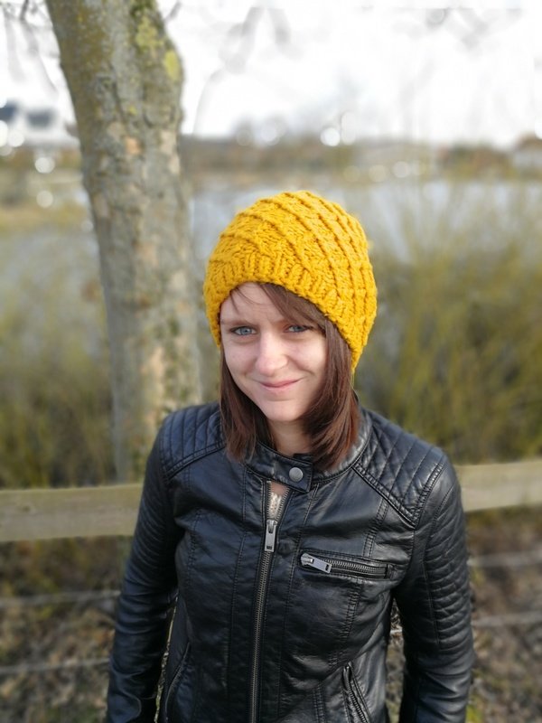 Du benötigst kein spezielles Garn. Die Beanie lässt sich in jeder Größe und mit jeder Garnstärke stricken.