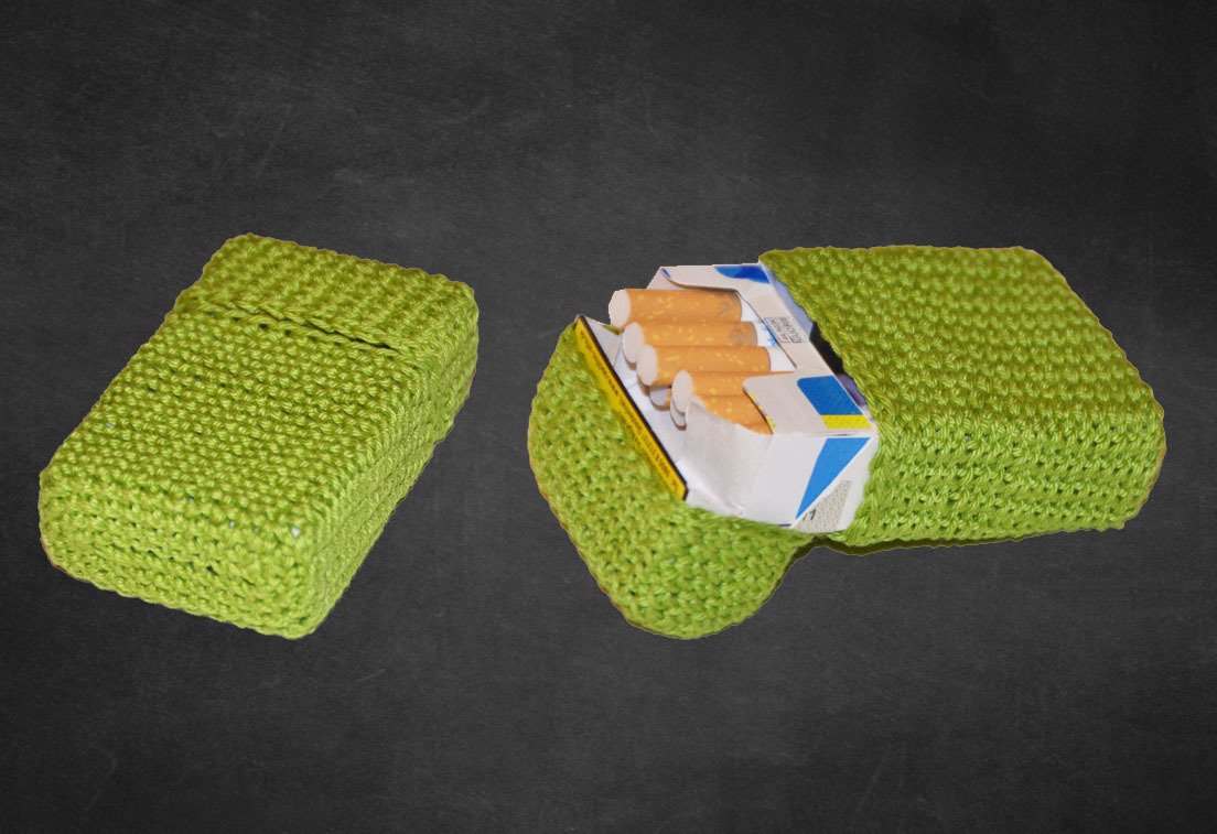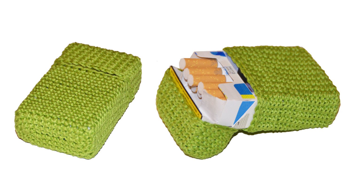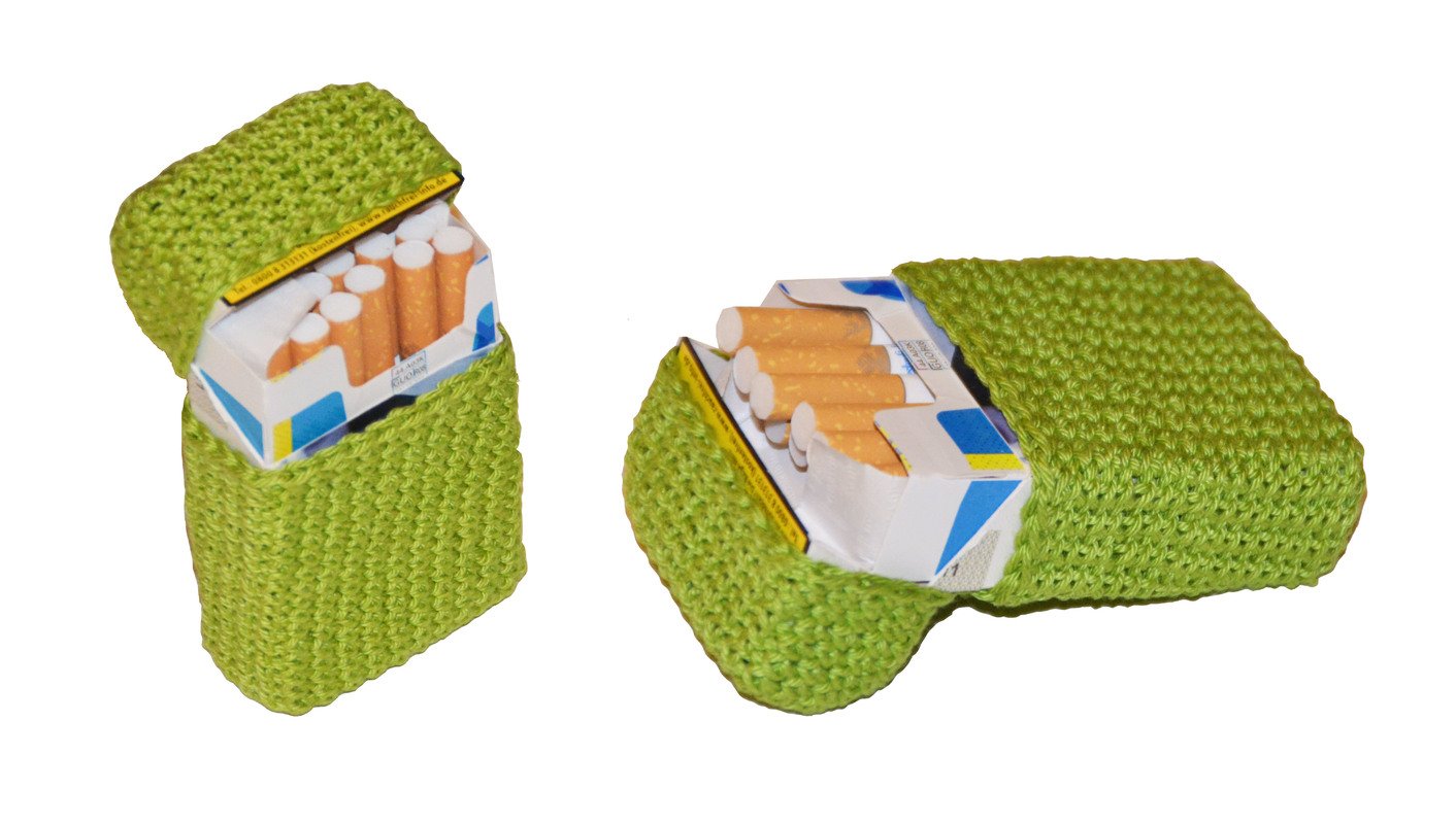 Umhäkelte Zigarettenschachteln in knalligen Farben. Sie verdecken nicht nur die unschönen Fotos, sondern sehen auch noch toll aus.