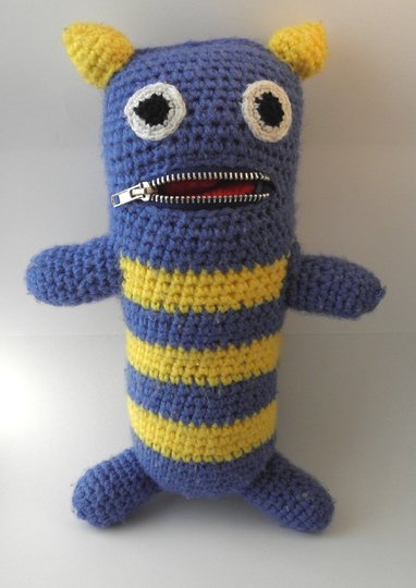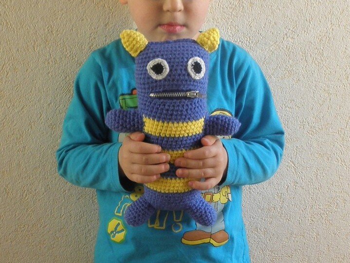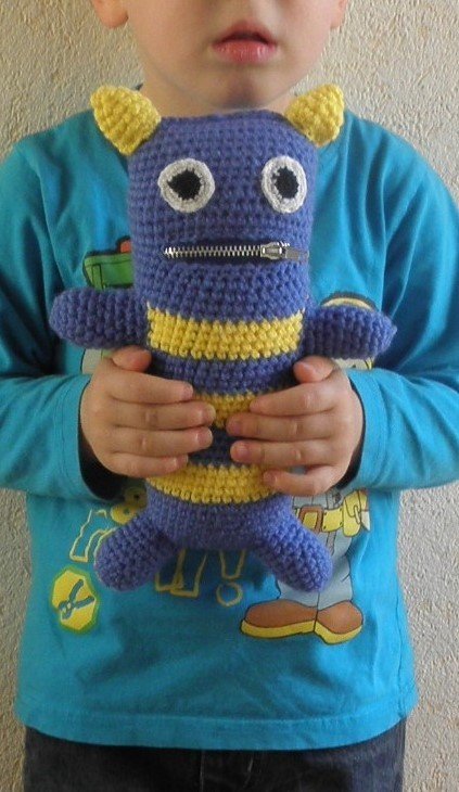Dieser kleine ca. 36cm große Freund ist Kuscheltier und Kummerkasten zu gleich. Er macht sich gut für Kindergartenanfänger die auch im Kindergarten schlafen dürfen und nicht ihr altes Babykuscheltuch mitnehmen möchten aber etwas zum Einschlafen brauchen. So ein cooles Monster hat wohl kaum einer. Auch für Schulanfänger (Einschulungsgeschenk) ist der Seelenfreund ein Freund zum reden der alles für sich behält dank Reißverschluss und innen liegender Mundtasche. Er ist eigentlich wenn man Zeit hat schnell gemacht.