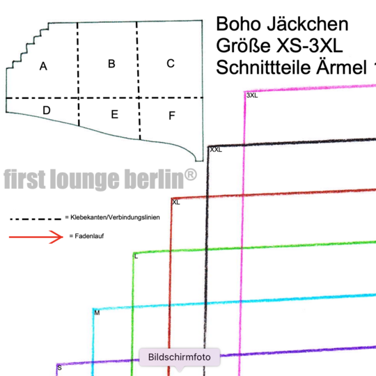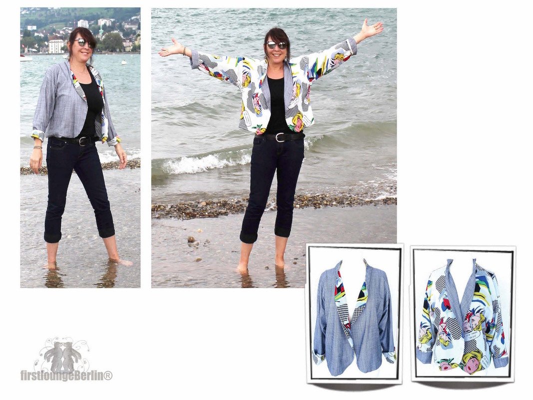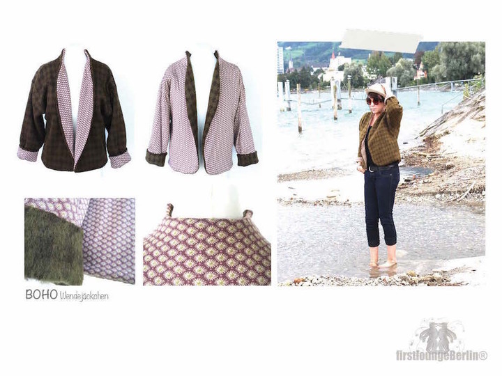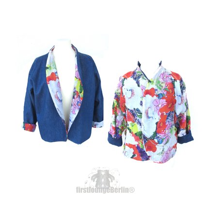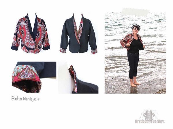 für BOHO Wende-Jacke, Blazer bzw. Jäckchen mit 3/4 Ärmeln in 7 Größen.