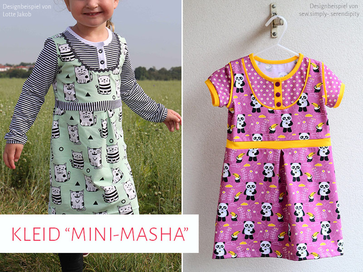 Kinderkleid “Mini-Masha” ist ein romantisches Sommerkleid mit rundem Einsatz vorn, Knopfleiste und einem farblich abgesetzten Taillenband. Das Rockteil hat vorn eine Kellerfalte und fällt dadurch besonders schön. Du kannst zwischen langen und kurzen Ärmeln wählen. Kinderkleid “Mini-Masha” ist in den Größen 92 - 164 im Schnittmuster enthalten.
