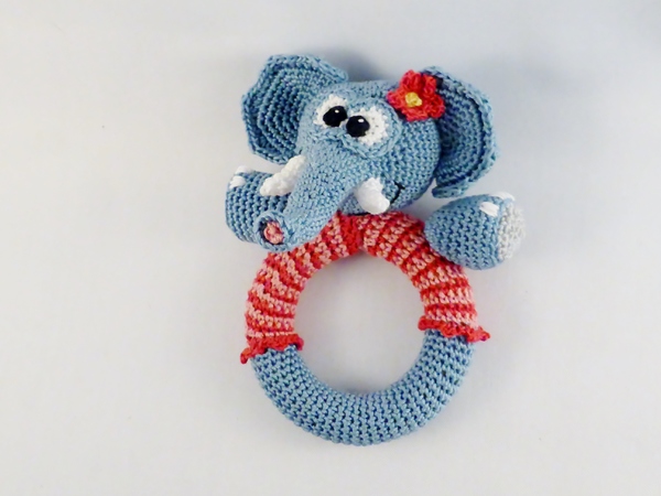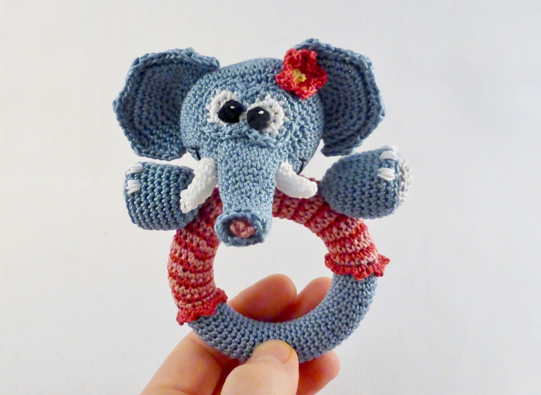 Babyrassel Elefant Elli: ca. 12 cm hoch, ca. 9 cm breit