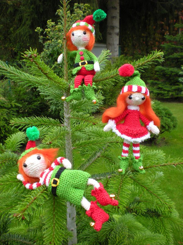 Es gibt 1 Wichtelmädchen im schönen Winterkleid, 1 Wichtel mit Jacke und langer Hose sowie 1 Wichtel mit Pullover und kurzer Hose. Alle haben eine tolle Mütze auf und die unverwechselbaren Elfenschuhe.