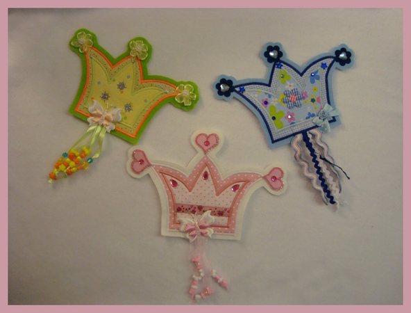 Die Anleitung beschreibt die rosafarbene Krone, durch Abwandlungen und ein bisschen Phantasie kann man natürlich unendlich viele Varianten nähen - siehe Beispielbilder.