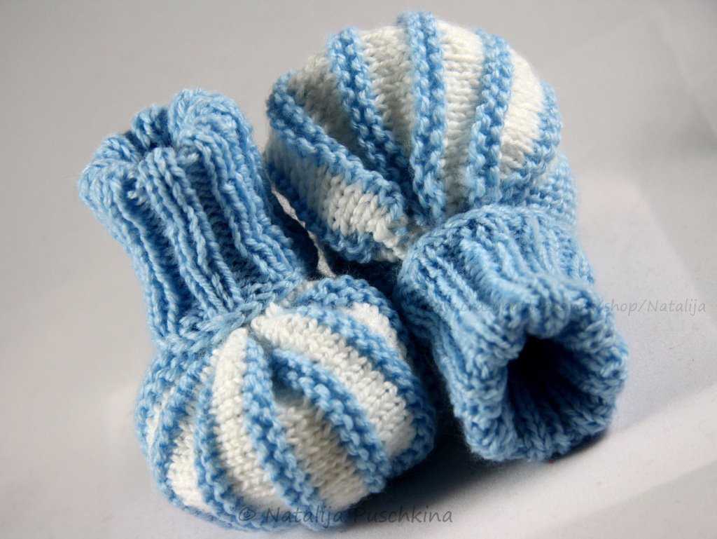 Design Nr. 2 - Baby Schuhe mit Rippen Muster am oben. Diese Schuhe sorgen für warme Füßchen. Rippen kann man ein Mal knicken oder (besonders für Neugeborene) bis zum Knie aufziehen.