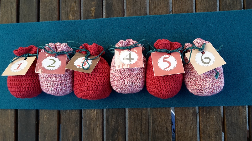 Ich biete an: gehäkelte Adventssäckchen, auch für Häkelanfänger gut geeignet.