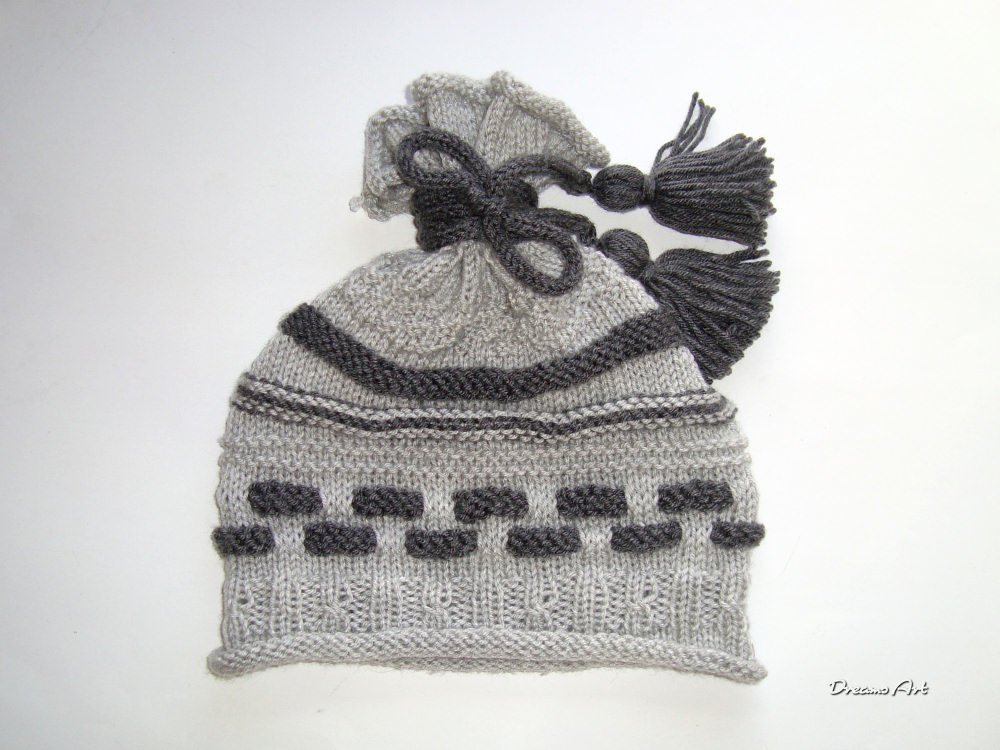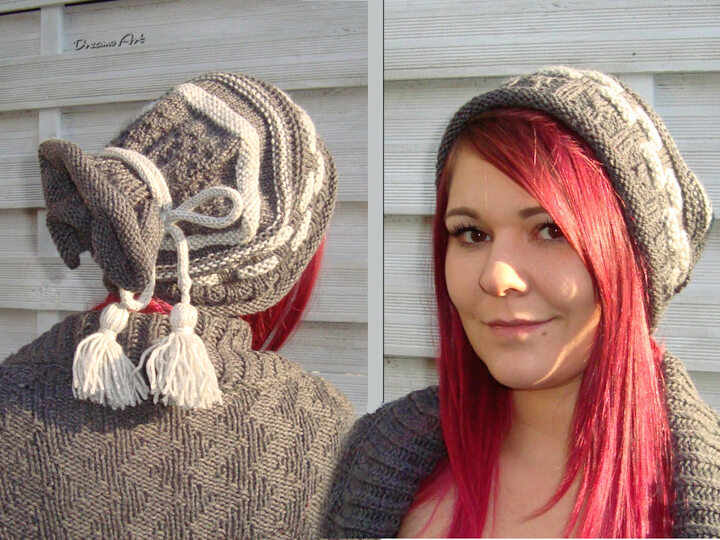 Hier bekommst du in elektronischer Form eine Strickanleitung für eine Mütze / Loop mit Kordelverschluss.
