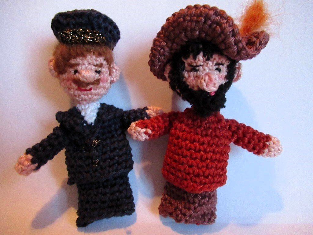Fingerpuppen sind ein Miniatur-Kasperletheaterfür die Hosentasche. Da dürfen der Räuber und der Polizist natürlich nicht fehlen! Sie sind ganz schnell und einfach gehäkelt. Alles was du brauchst, sind ein paar Wollreste, eine Häkelnadel und Grundkenntnisse im Häkeln.