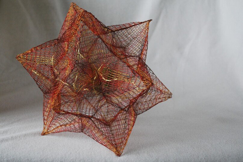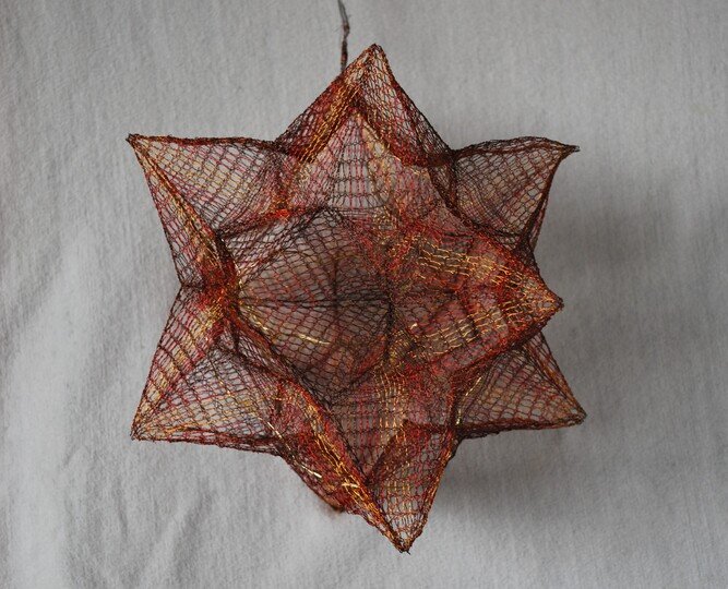 Die Anleitung ist für eine geklöppelten Stern mit ca. 23 cm Durchmesser. Der Stern ist in einem Stück mit ungeschnittenen Drähten geklöppelt und später zusammengenäht.