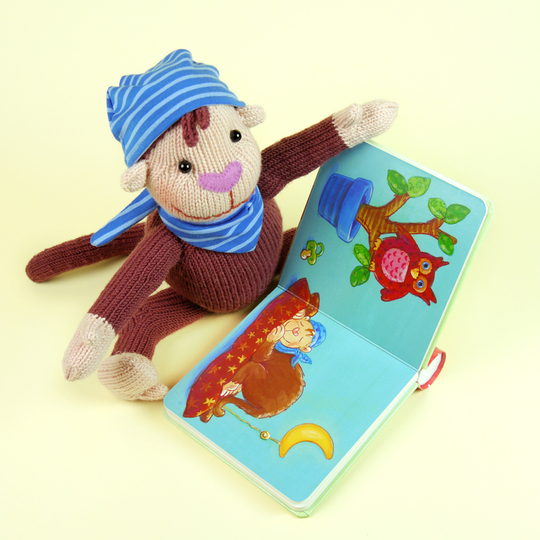 *Lille freut sich schon darauf, mit ihren neuen Freunden durch die Kinderzimmer zu toben! Das quietschfidele Affenmädchen ist die Heldin einer bezaubernden Kinderbuchreihe von Anna Karina Birkenstock – vor einiger Zeit fragte sie mich, ob ich die beiden nicht stricken könne. Das war natürlich eine Herausforderung, der ich nicht widerstehen konnte!"