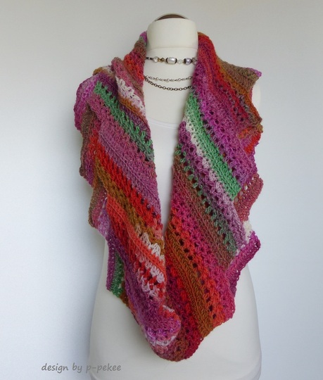 Als Loop ist er schnell übergezogen, Zacken zurecht zupfen und fertig.