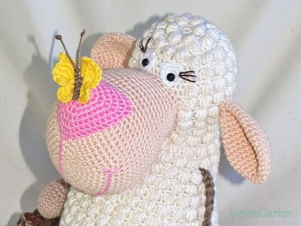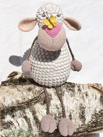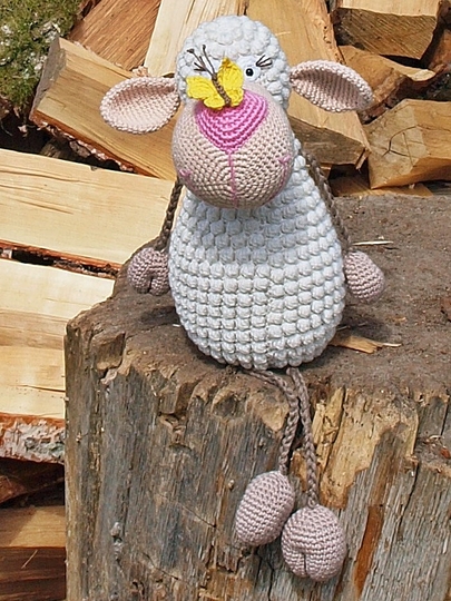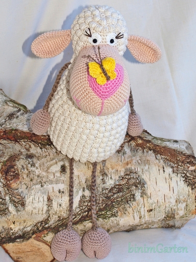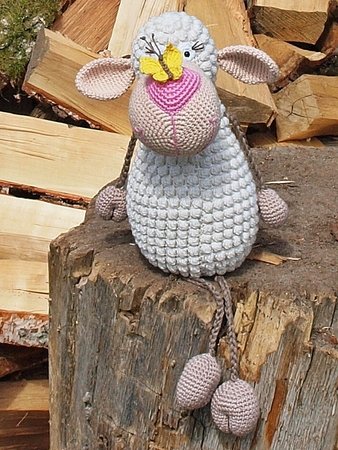 Huch was ist denn da auf der Nase gelandet? Ein kleiner Schmetterling hat es sich auf der Nase des Schäfchens bequem gemacht. Das kleine Schäfchen ist ein waschechter Kantensitzer. Es liebt es, einfach so auf Gegendständen rum zu sitzen, seine Beine einfach so rumbaumeln zu lassen oder als Deko auf Möbeln zu sitzen. Super geeignet auch als Mitbringsel zum Besuch, Geburtstag oder einfach nur so. :)