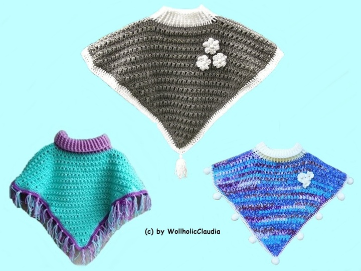Dieser Poncho ist ein toller Begleiter für die kalten Tage. Die Anleitung enthält Erklärungen für alle Größen. In der Gestaltung sind der Phantasie keine Grenzen gesetzt. Ob mit Pompoms oder Fransen, mit Blümchen oder Quasten verziert und in allen Farben toll anzusehen.