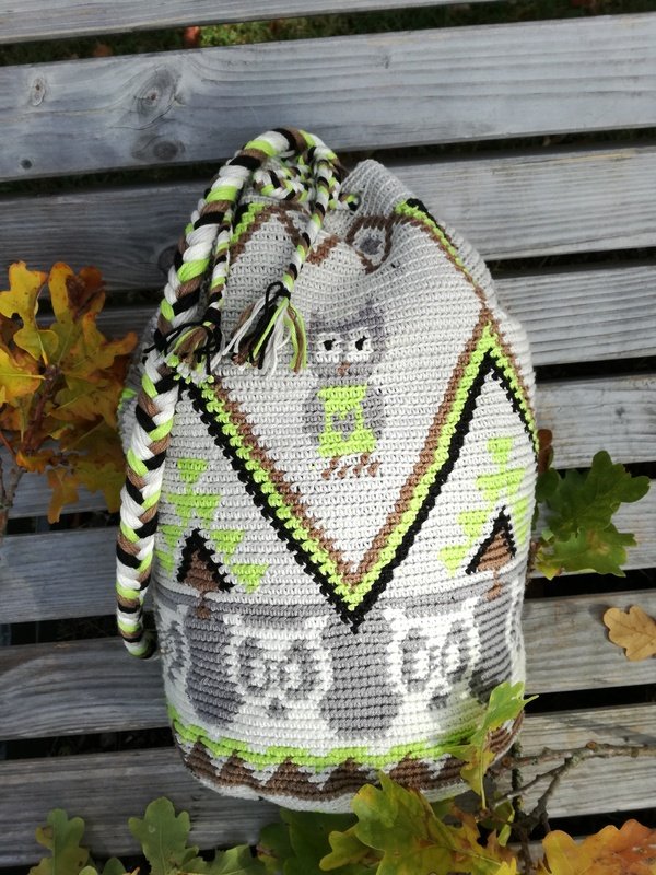 Jede Mochila ist ein eigenes kleines Kunstwerk, ein Unikat aus euren Händen. Mit den gewählten Farben und motiven kann jeder Tasche der ganz eigene lebendige Charakter verliehen werden. Das macht sie zu etwas ganz besonderem....euren neuen Lieblingsstück