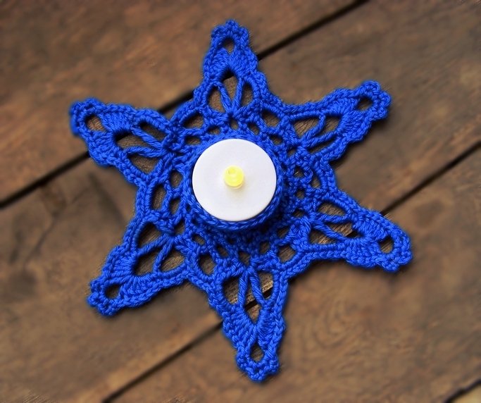 Häkelanleitung schneeflocke teelichthalter