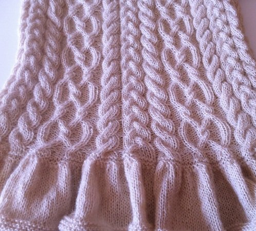 Der mit vielen unterschiedlichen Zopfmustern gestrickte Pulli kann entsprechend Körpergrösse des Kindes und gewünschter Länge sehr einfach gekürzt oder verlängert werden, es kann z.B. auch als Minikleid / Kleid gearbeitet werden.